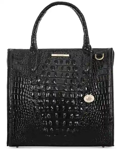 Brahmin Caroline Melbourne Embossed Leather Satchel - Black/Gold