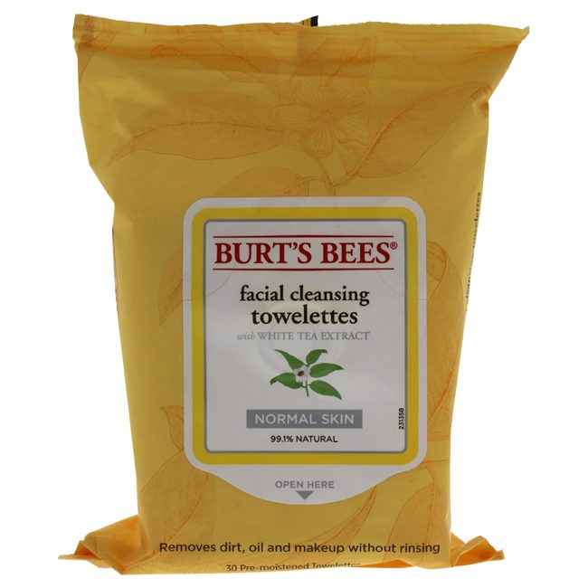 Burtu2019s Bees Facial Cleansing Towelettes - White Tea Extract trap and remove all kinds of impurities, including fat, dirt, oil, and makeup. Featuring a gentle, botanical-infused formula, these 98.5% natural wet wipes leave the skin perfectly refreshed without rinsing, rubbing, stretching, or over...more