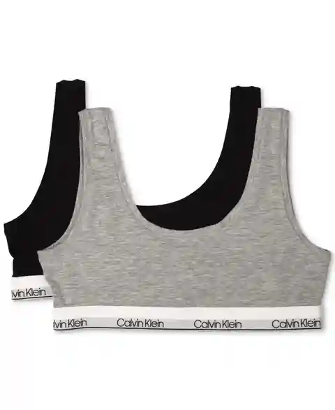 Calvin Klein stocks her drawer with comfortable basics with this two-pack of scoop-neck bralettes with pullover styling.