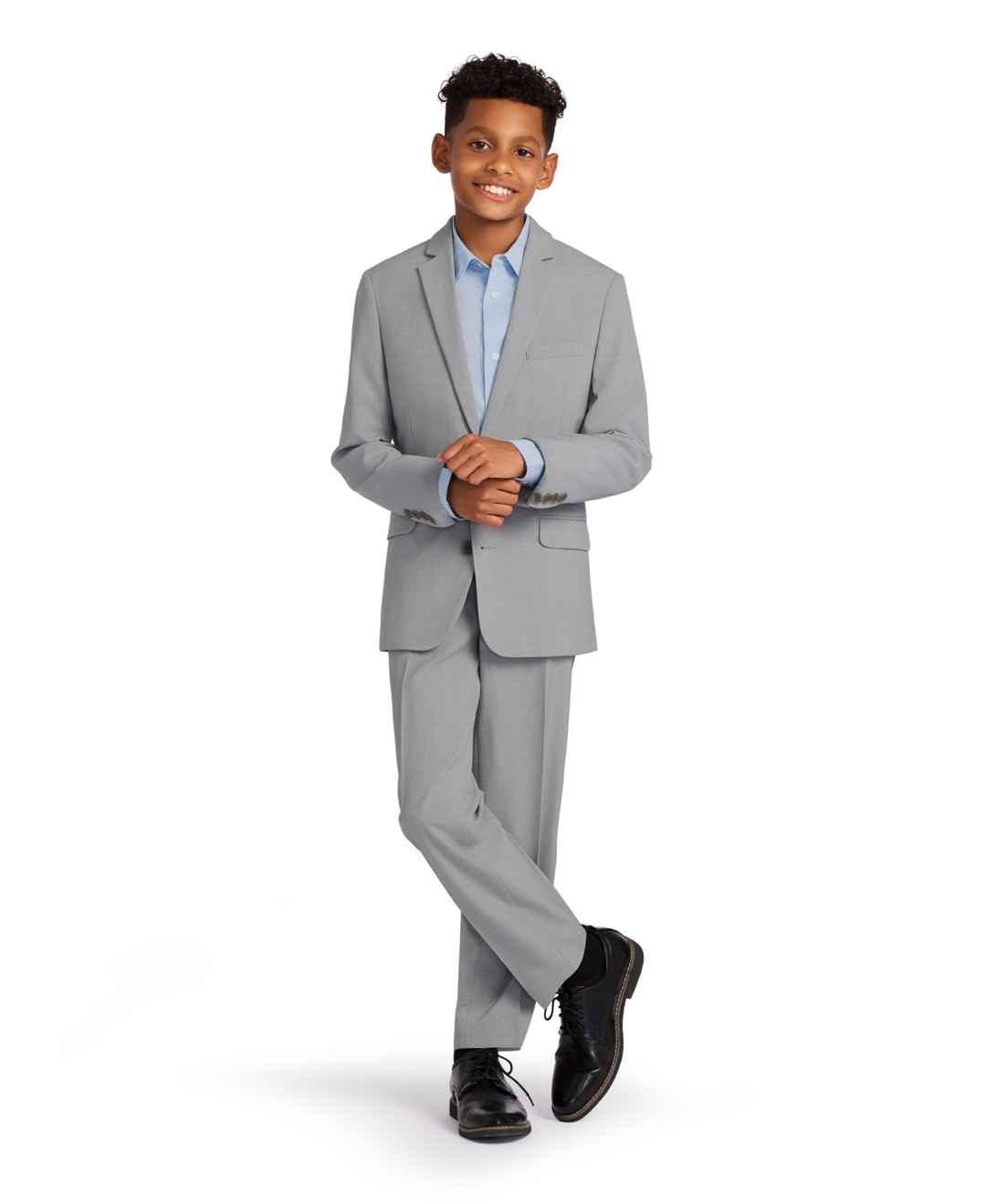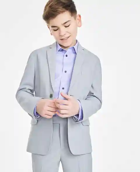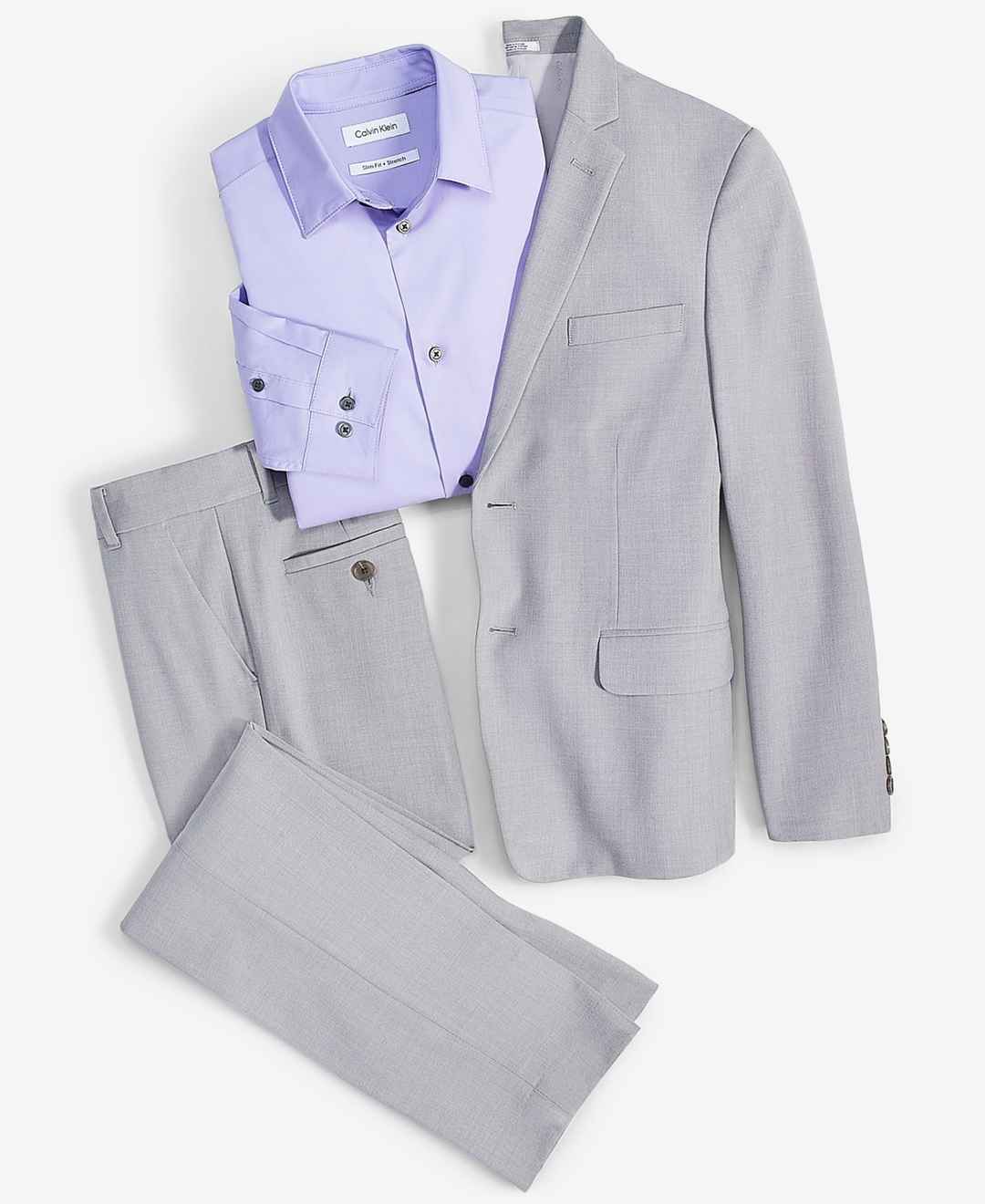 A touch of stretch enhances the comfortable fit and tailored look of this suit jacket from Calvin Klein.