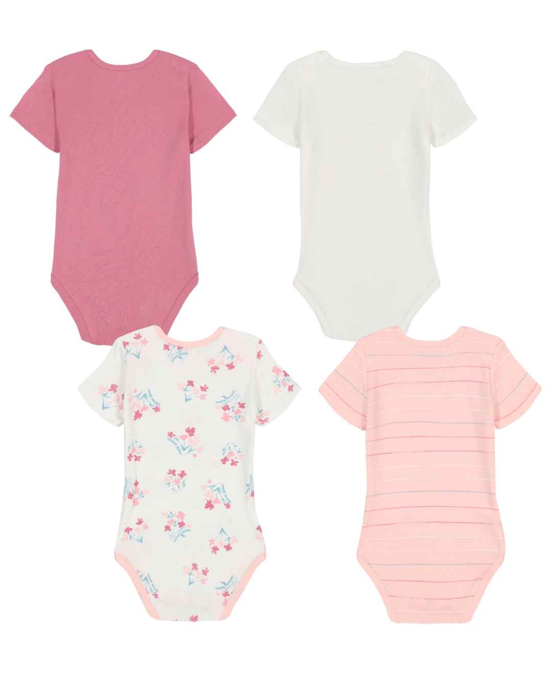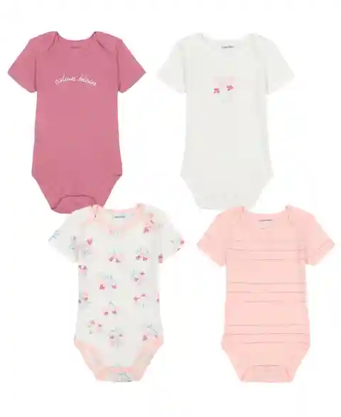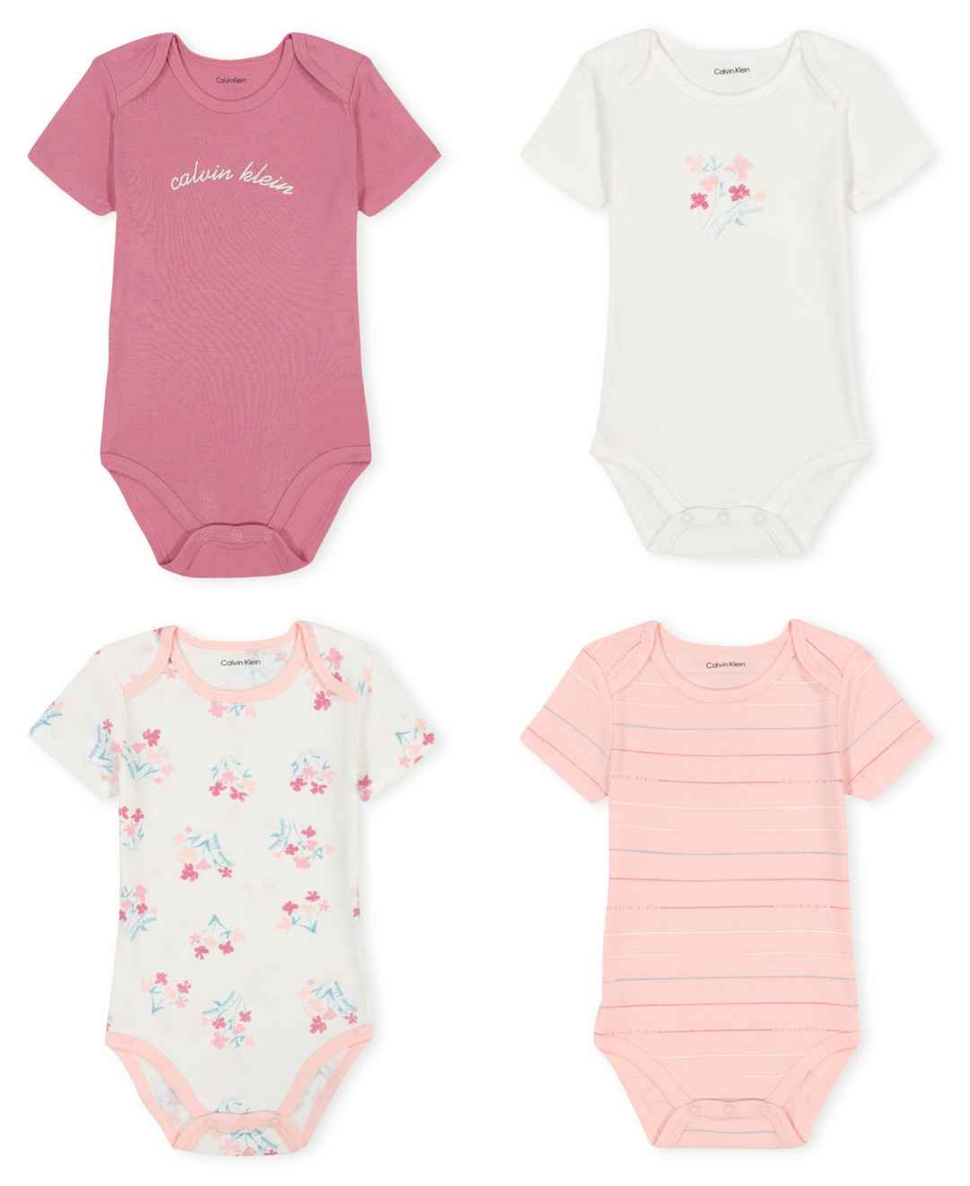 Designed for fuss-free dressing, this Calvin Klein four-pack short sleeve floral logo bodysuit set features overlap shoulders and ribbed trim to simplify outfit changes. A tag-less interior and snap closure ensure all-day comfort and support.