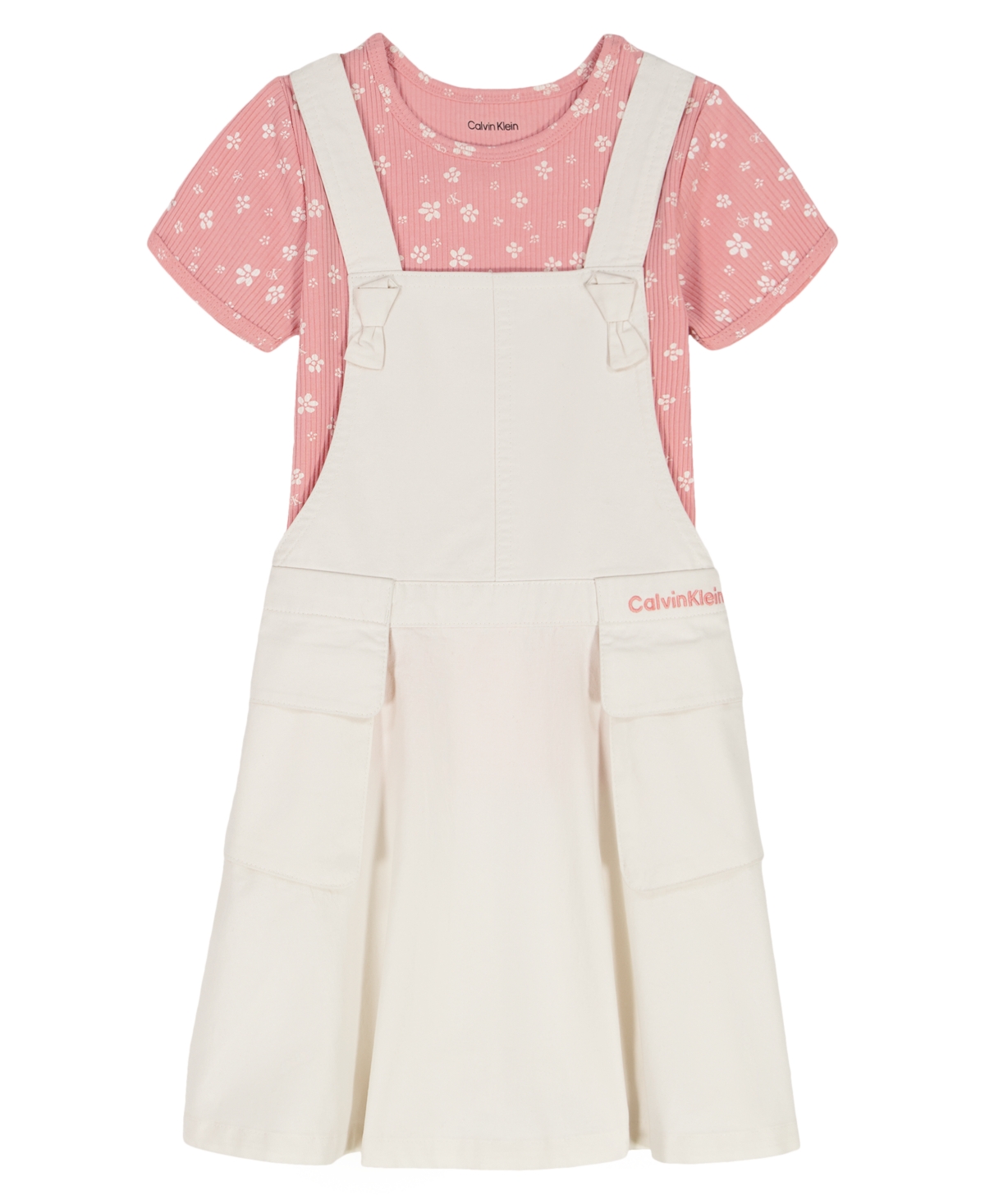 Home Calvin Klein Calvin Klein Girls' Toddler 2T-4T Short-Sleeve Top and Overall, 2-Piece Set - Natural/Pink