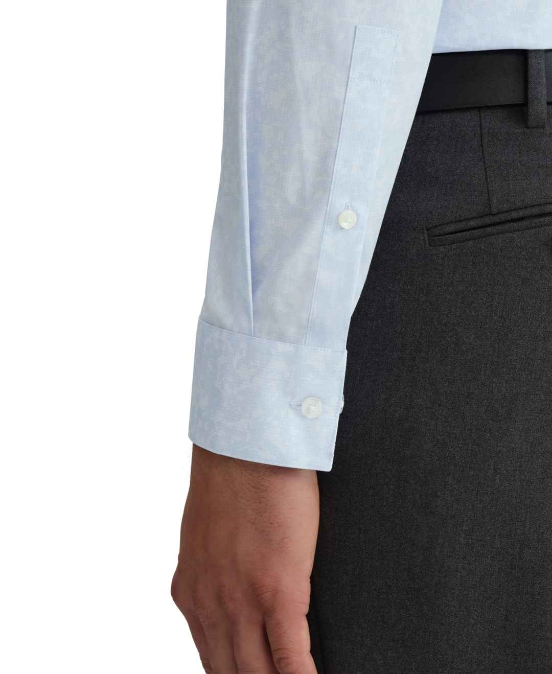 Achieve a tailored look with this Calvin Klein dress shirt, engineered with stretch for ease of movement. The slim-fit provides a modern silhouette suitable for various settings.