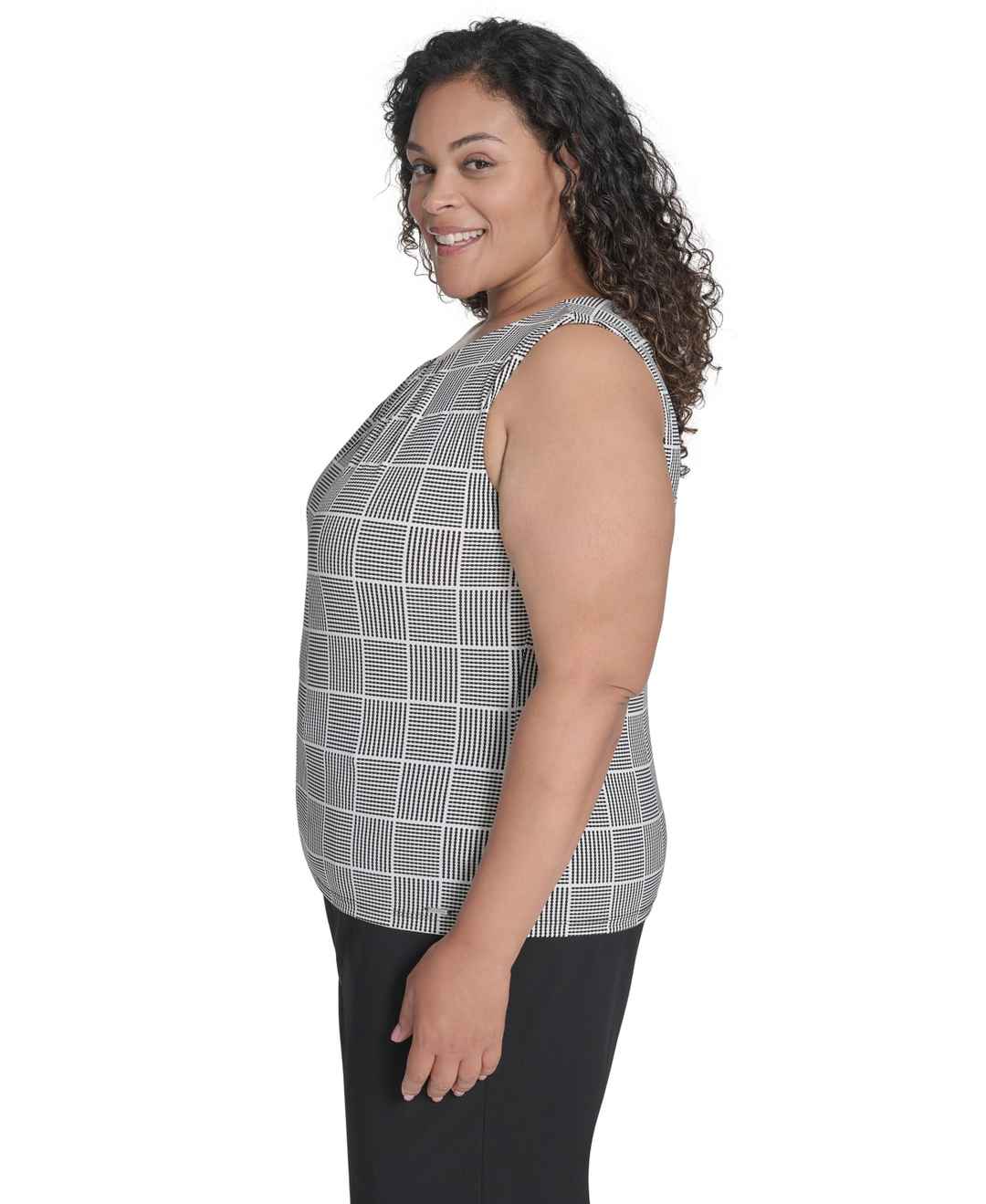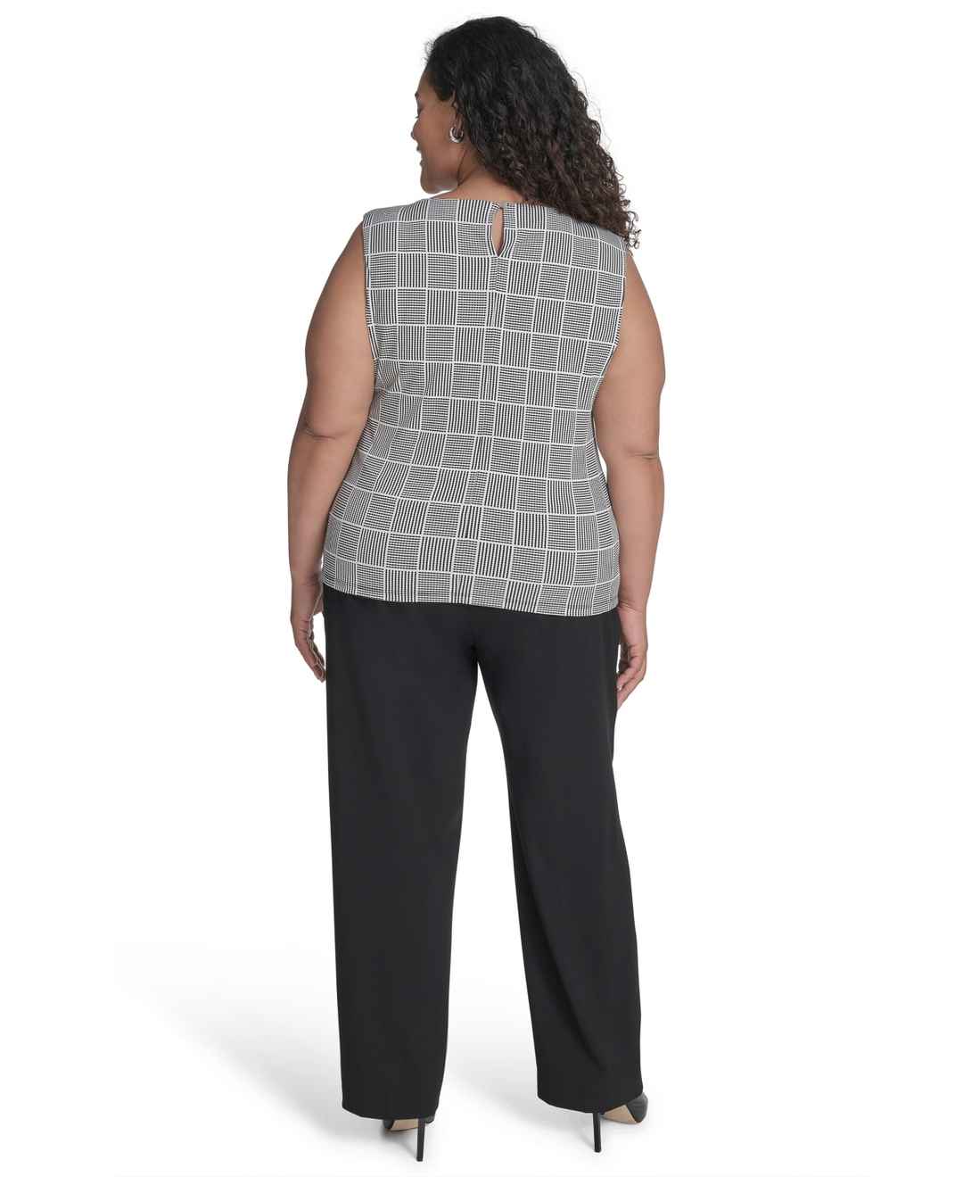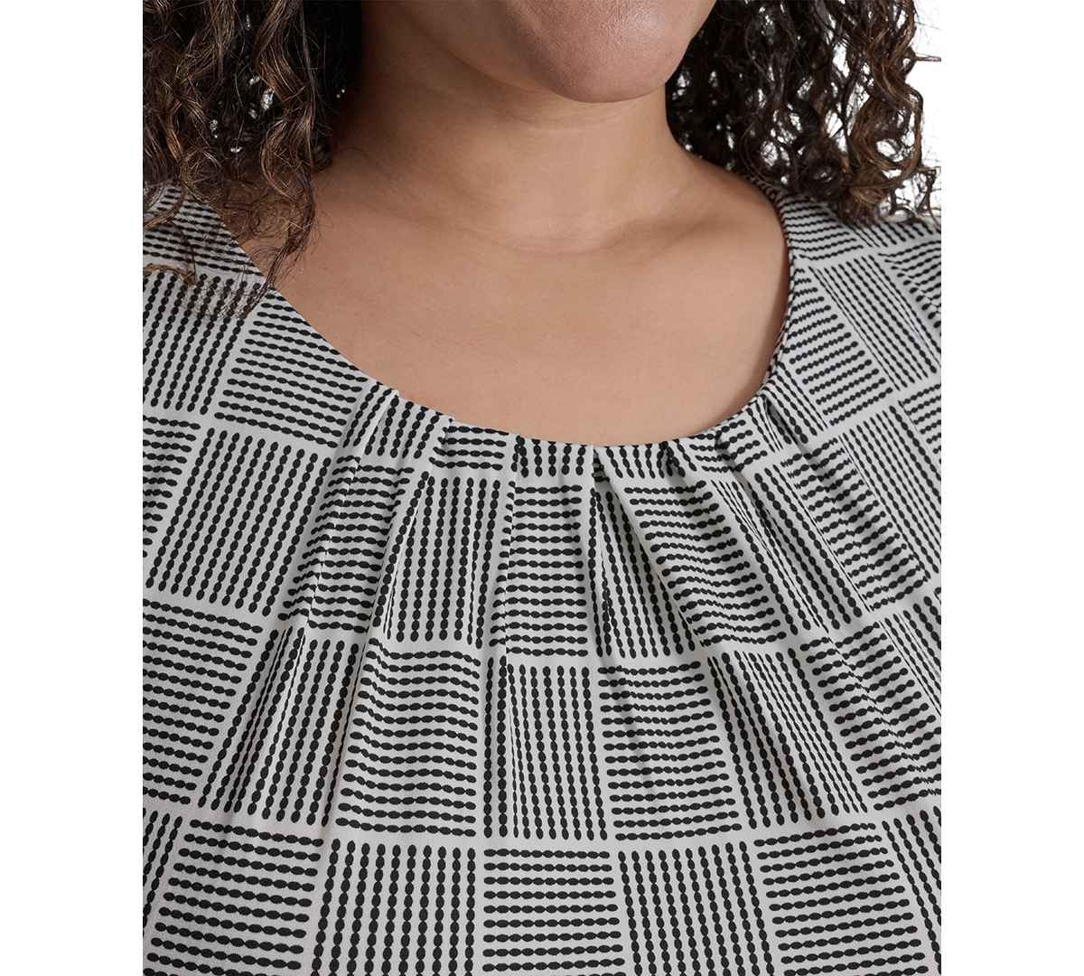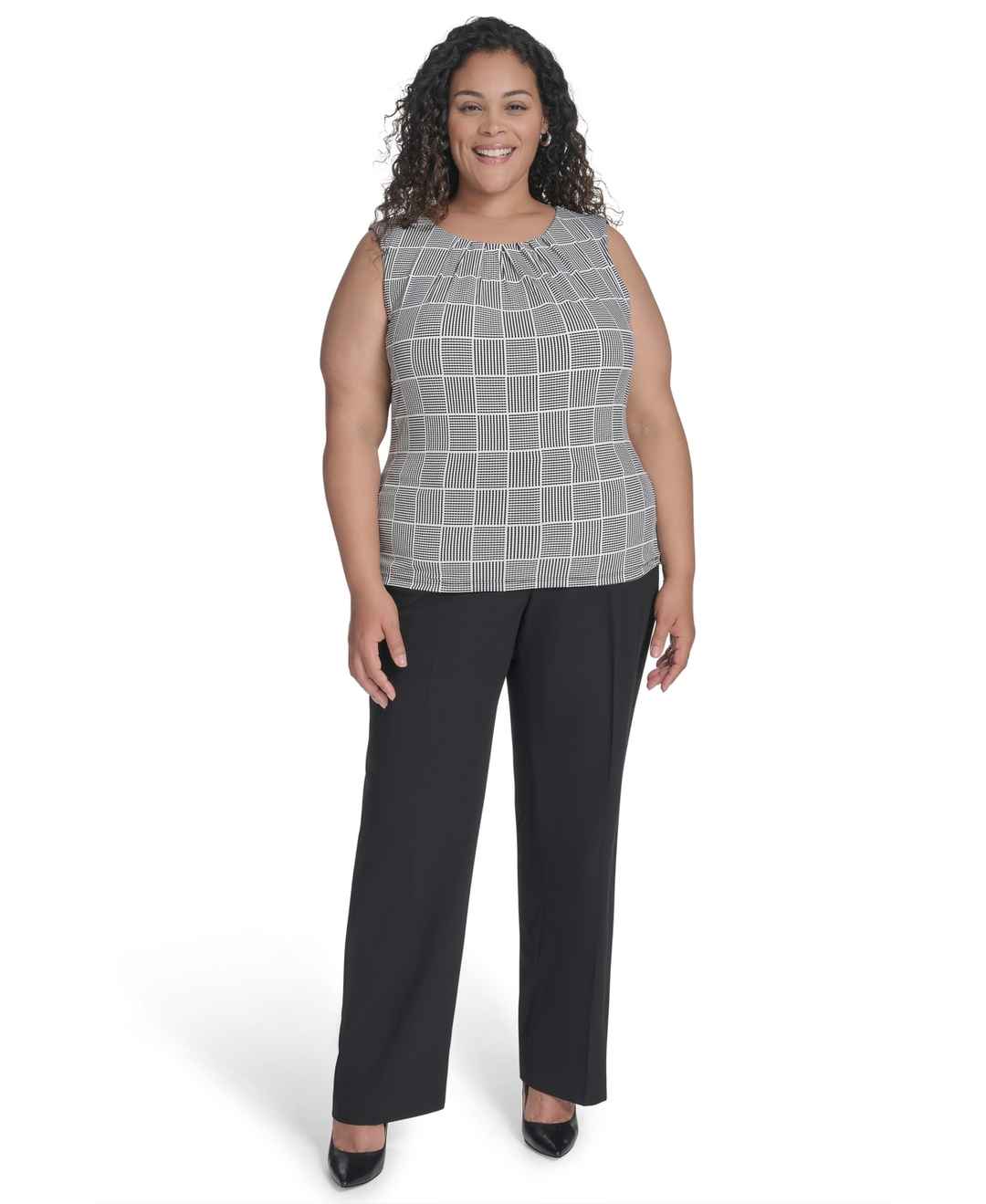 Calvin Klein Plus Size Pleated Top - Black/Cream