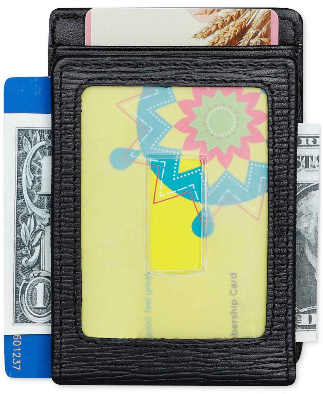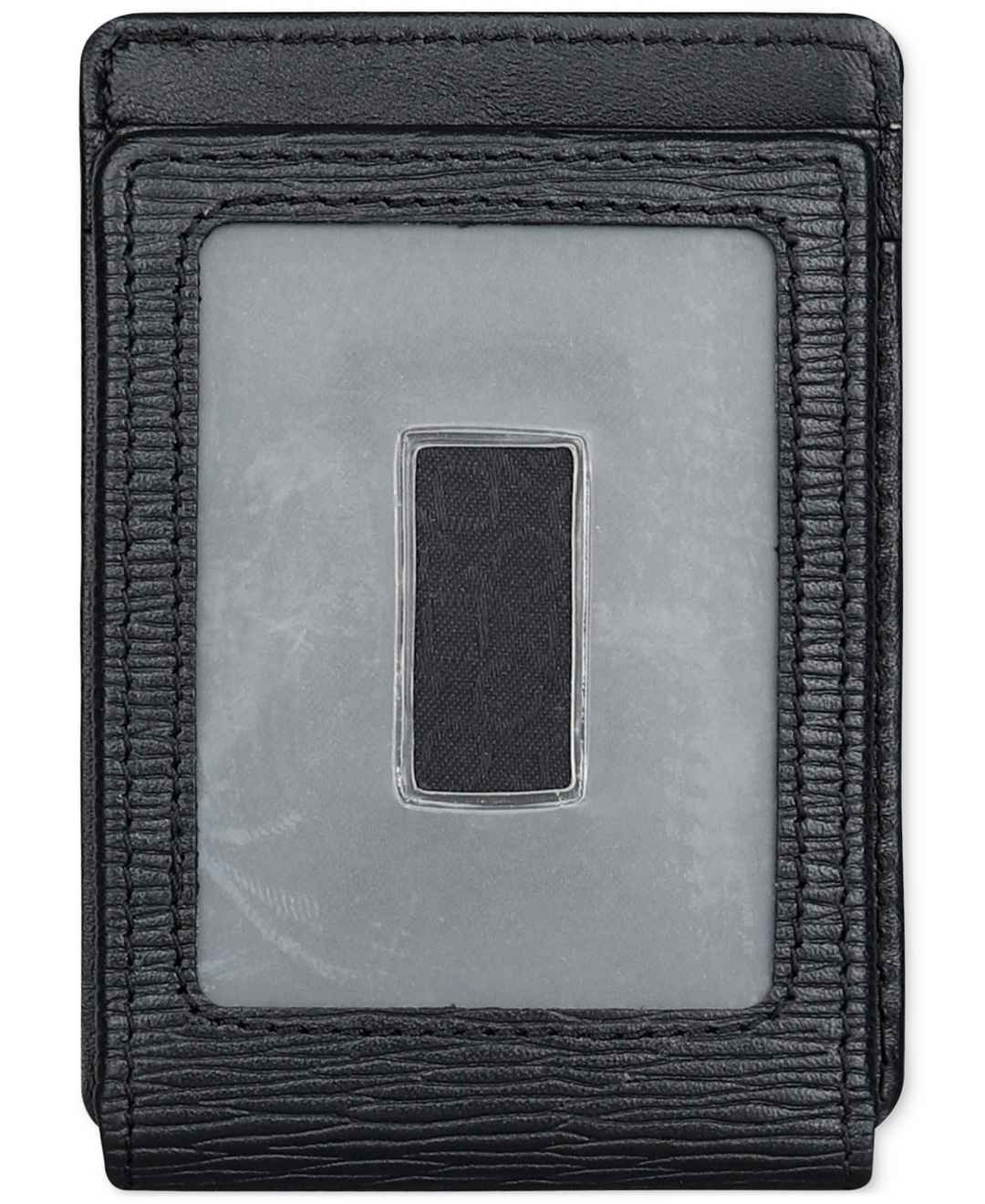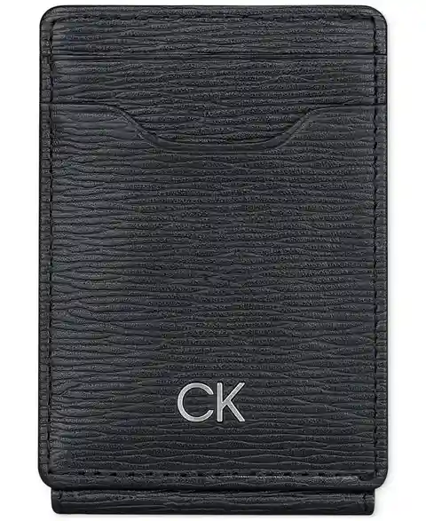 Protect your valuables with understated, all-black elegance when you entrust your cards and cash to this textured pebble wallet from Calvin Klein.