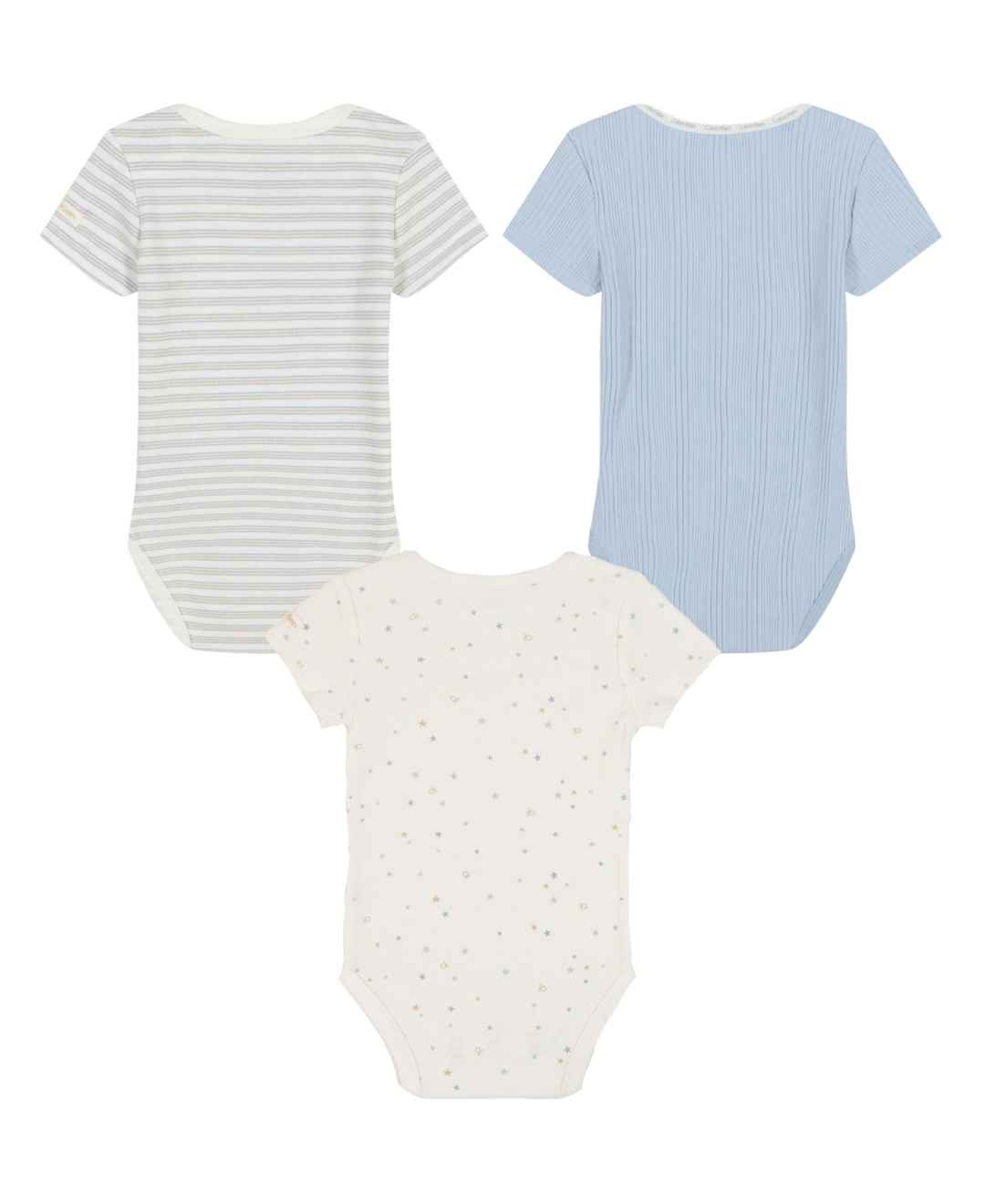 Calvin Klein Baby Boys 3-Piece Short Sleeve Bodysuits Set - Vanilla, Blue fog