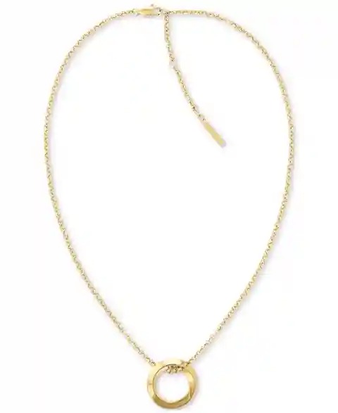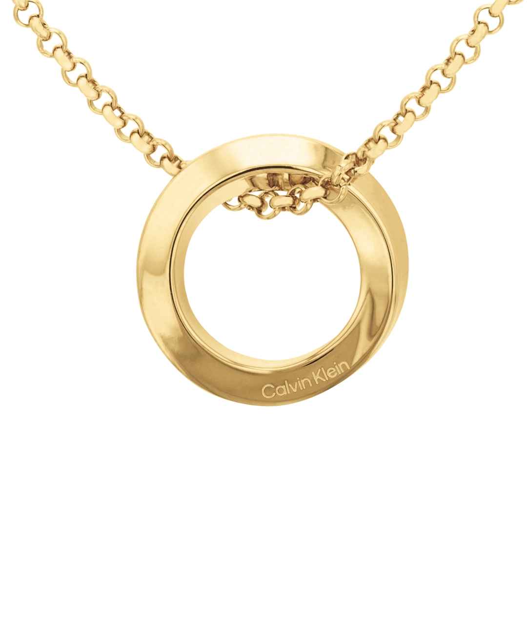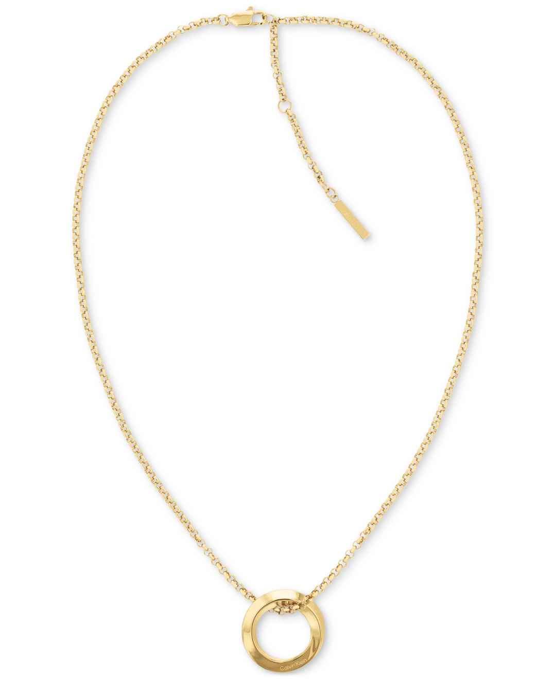 Calvin Klein Gold-Tone Stainless Steel Twist Ring Pendant Necklace, 16" + 2" extender - Gold