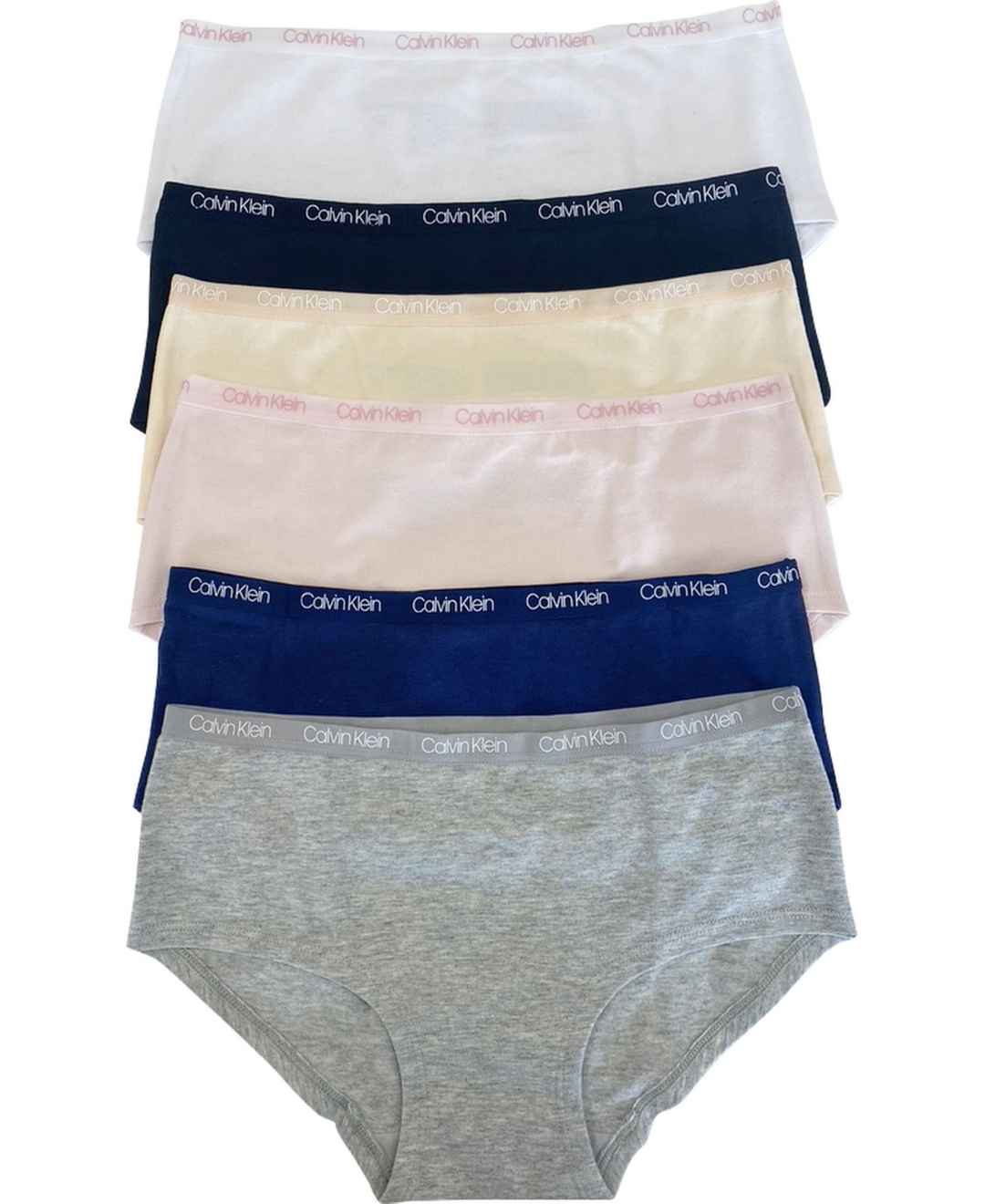 Calvin Klein Big Girls Cotton Hipster Set, Pack of 6 - Crystal Pink, Black, Nude, Heather Gray,