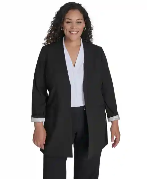 Calvin Klein Plus Size Collarless Open-Front Topper Jacket - Black
