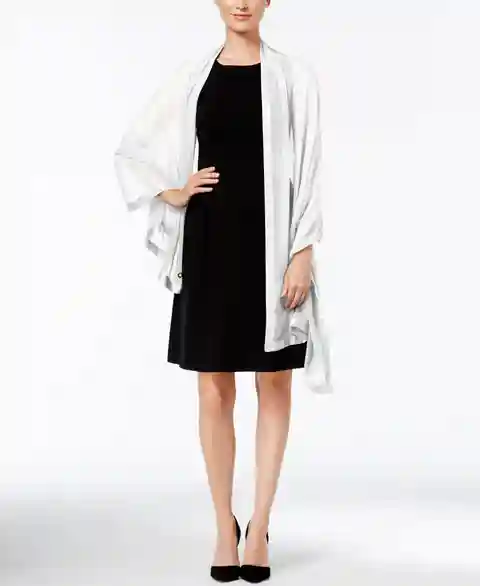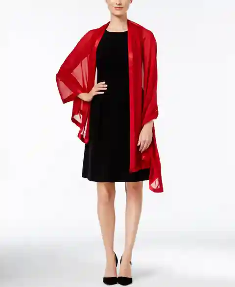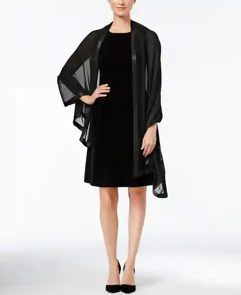 Lustrous satin trims a supremely elegant evening wrap cast in fine-spun chiffon from Calvin Klein, this wrap is the perfect way to complete any evening outfit.