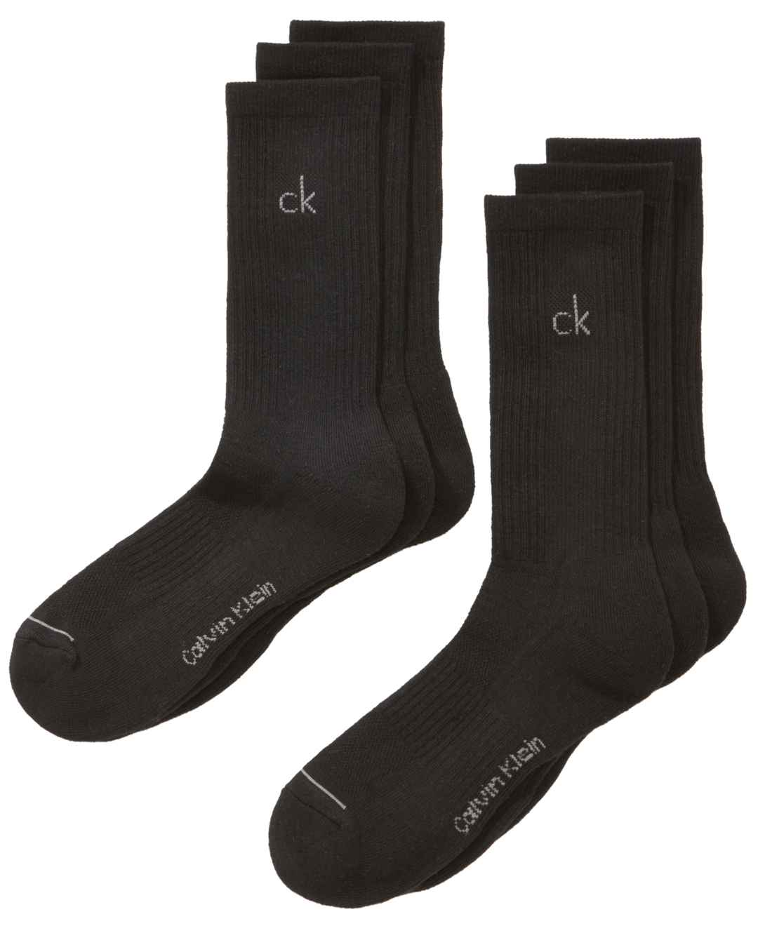 This six-pack of performance-blend socks from Calvin Klein combines total foot comfort with an original ribbed crew style.