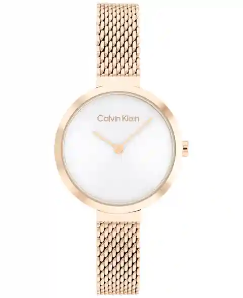 The Minimalistic watch from Calvin Klein features an open dial and flexible mesh bracelet. Style #25200083