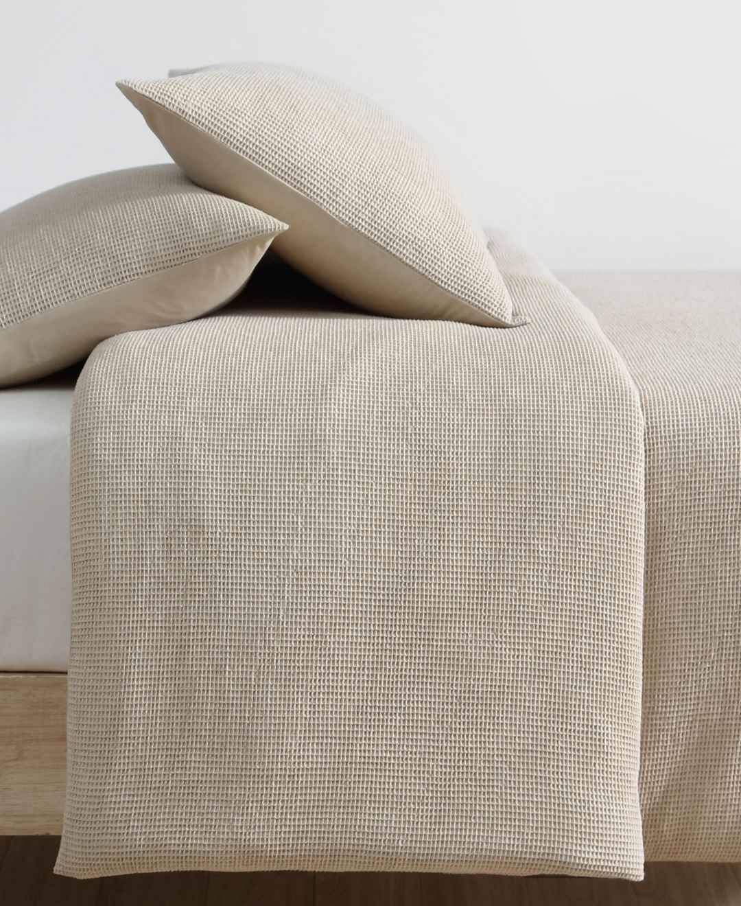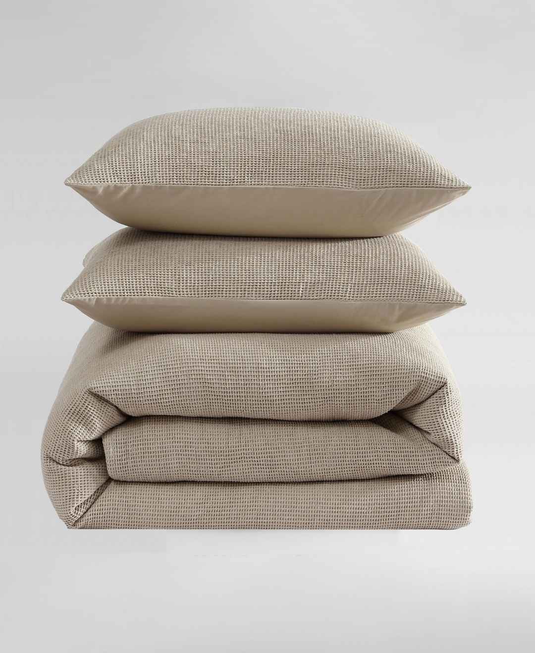 Calvin Klein Microwaffle Melange 3 Piece Duvet Cover Set, King - Flax Beige