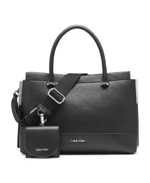 Calvin Klein Bianca Triple Compartment Convertible Satchel - Black/Silver