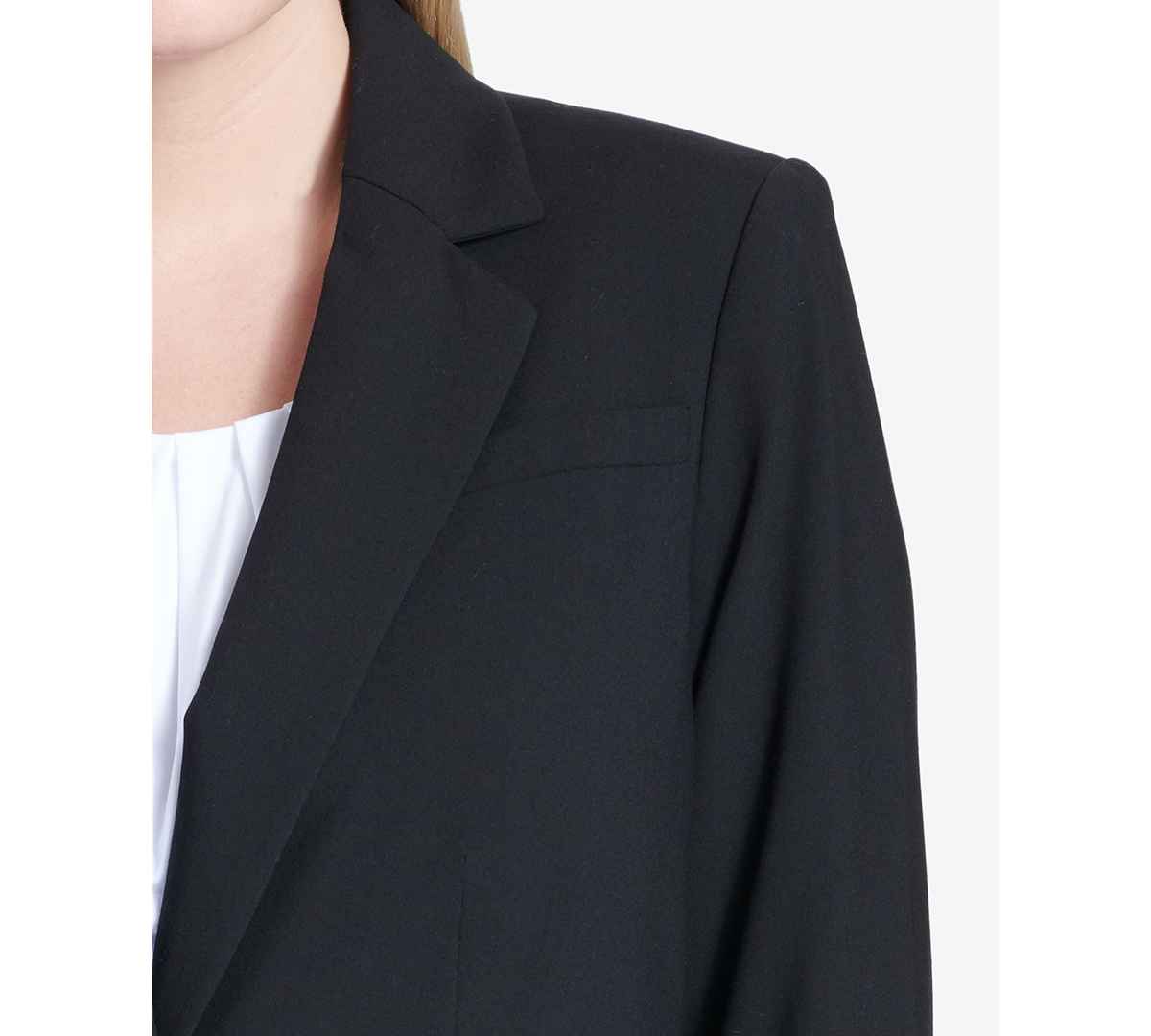 Calvin Klein's plus size blazer is your new workweek staple styled with a single-button closure and classic notched lapel. An elongated hem lends added coverage.