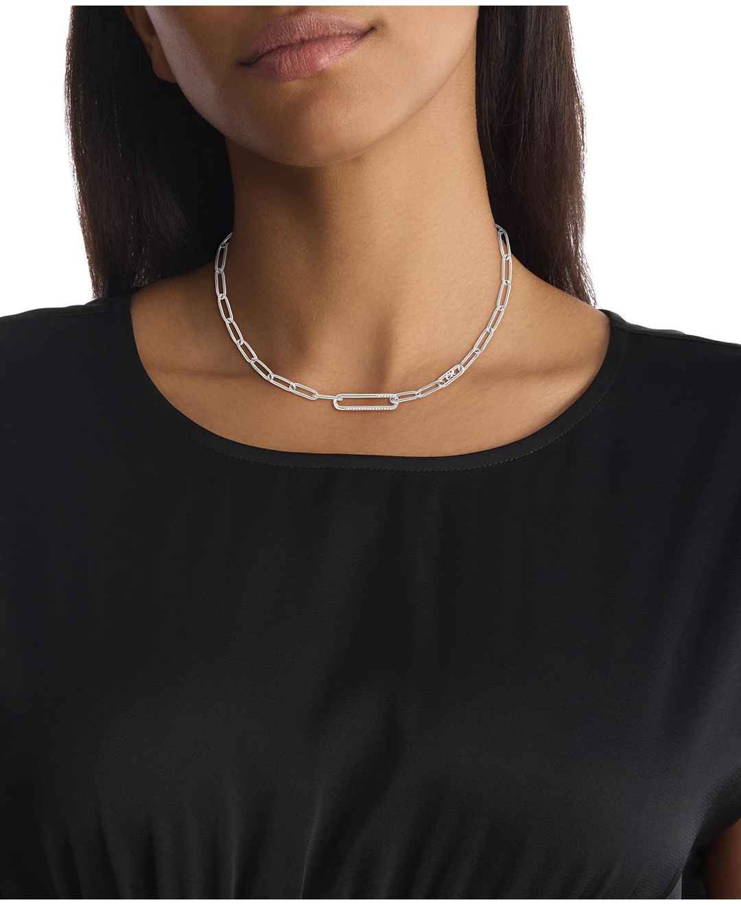 An elegant addition to any look - Calvin Klein's oval link collar necklace with an exaggerated pave-adorned oval at the center.