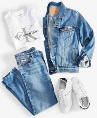 Updated with signature metal logo hardware, these Calvin Klein jeans are cut in a slim fit with stylish detailing and reinforced seams.