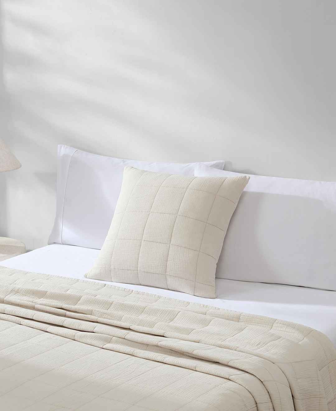 The Cotton Gauze collection embodies the effortless sophistication of Calvin Klein. In a breathable double-weave gauze, it is soft, with a lived-in feel. Light and airy, it delivers relaxed comfort with a refined edge. The pillow cover features a clean box-stitch design.