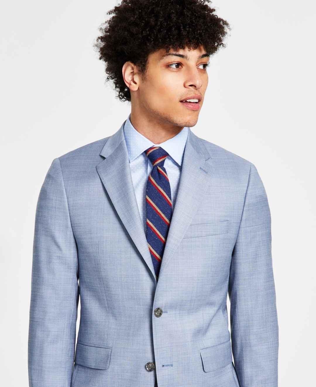 Keep your polished look feeling fresh with the sleek contemporary tailoring and unrestrictive stretch performance of this suit jacket from Calvin Klein.