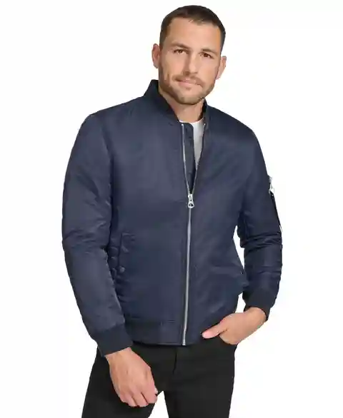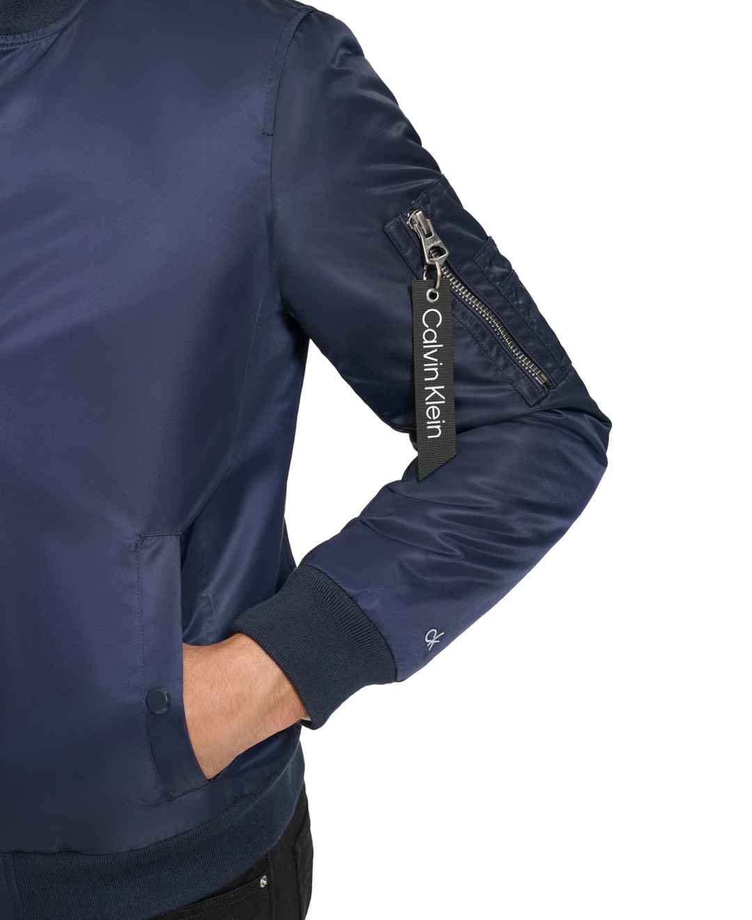 Calvin Klein shows that classic style is best left unchanged with the familiar shape and look of its timeless Ma-1 Nylon Bomber Jacket. This stylish jacket is made of 100% nylon and is lined with polyester; it also has rib-knit collar and cuffs, so it is both warm and comfortable.