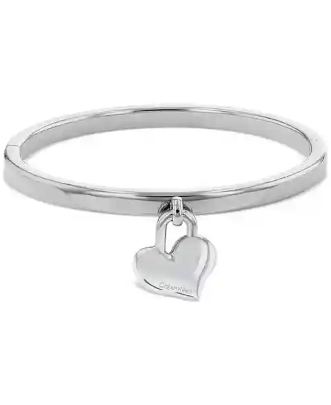 Calvin Klein Stainless Steel Logo Heart Charm Bangle Bracelet - Silver