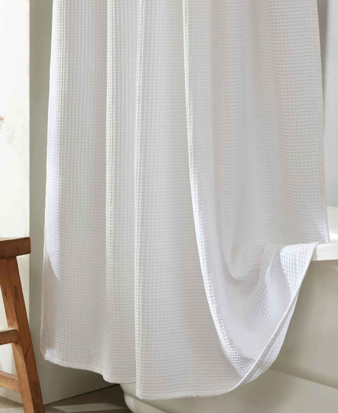 Complete your bathroom decor with the Calvin Klein waffle shower curtain. Available in multiple colorways, each curtain has a cotton-rich construction. Features 12 button holes for easy hanging. Packaged using branded ribbon and insert cards.