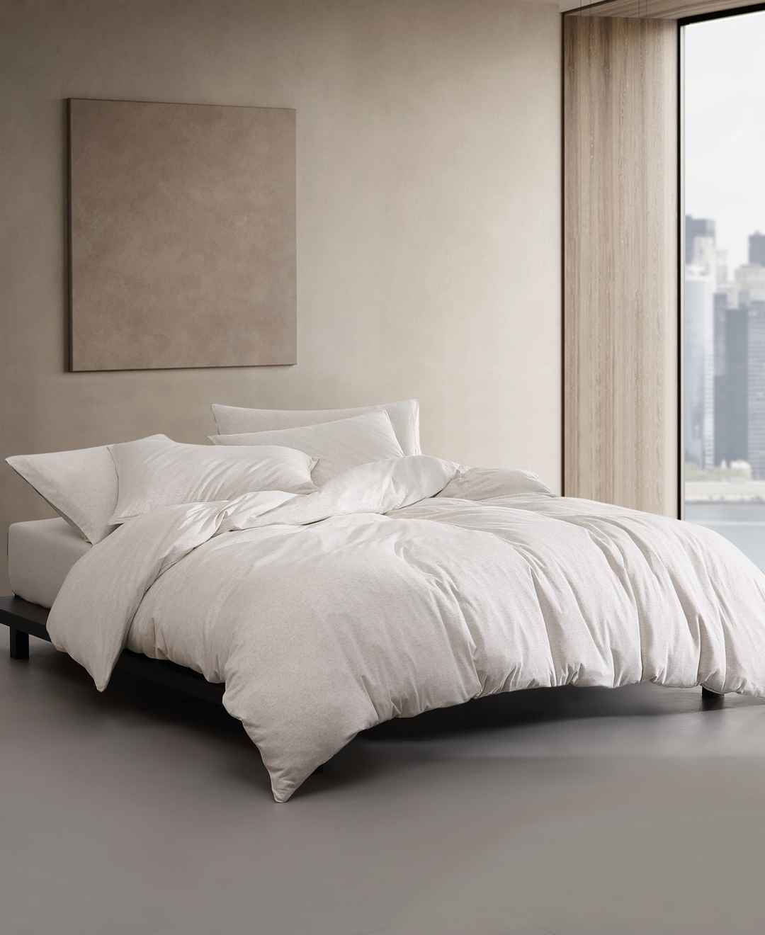 Home  Calvin Klein  Calvin Klein Modern Cotton Melange Tencel Jersey 3 Piece Duvet Cover Set, Queen - Ivory, Gray
