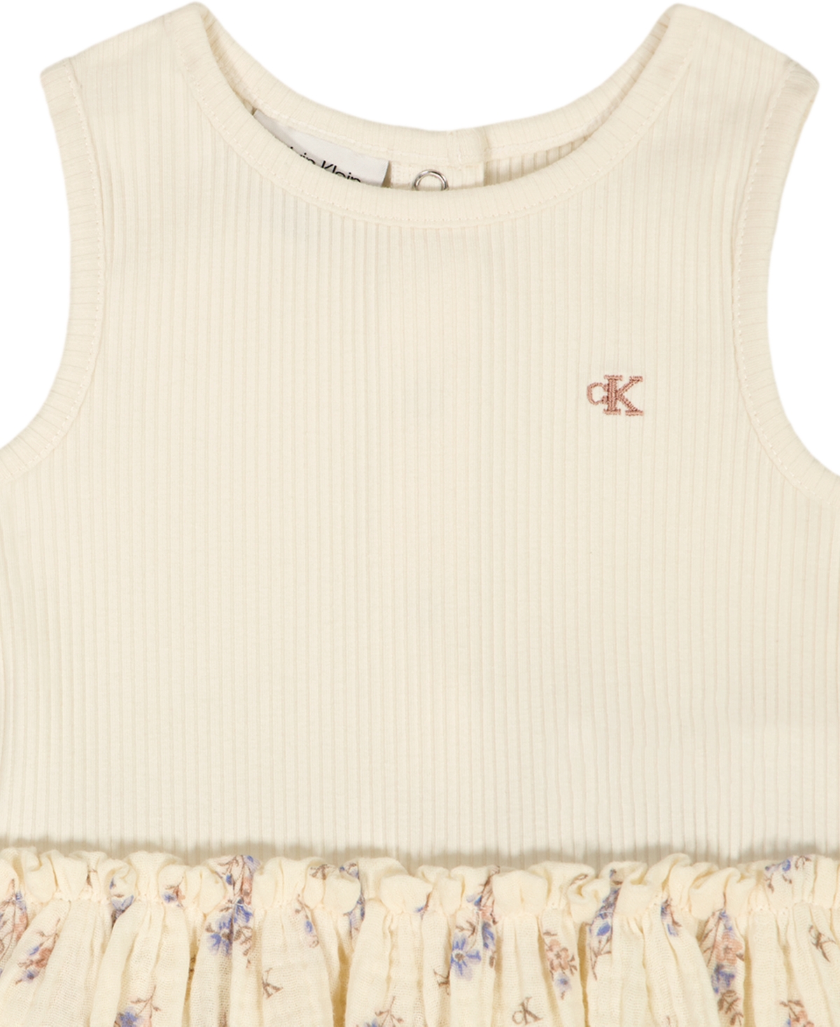 Calvin Klein Baby Girls' Chunky Rib and Printed Cotton Sunsuit - Natural