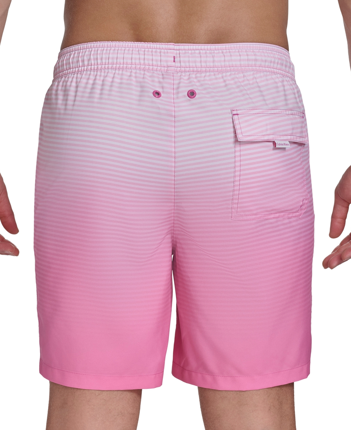 Designed to keep you looking and feeling your best, these striped gradient drawstring volley shorts from Calvin Klein feature quick-dry, sun-protective fabric.