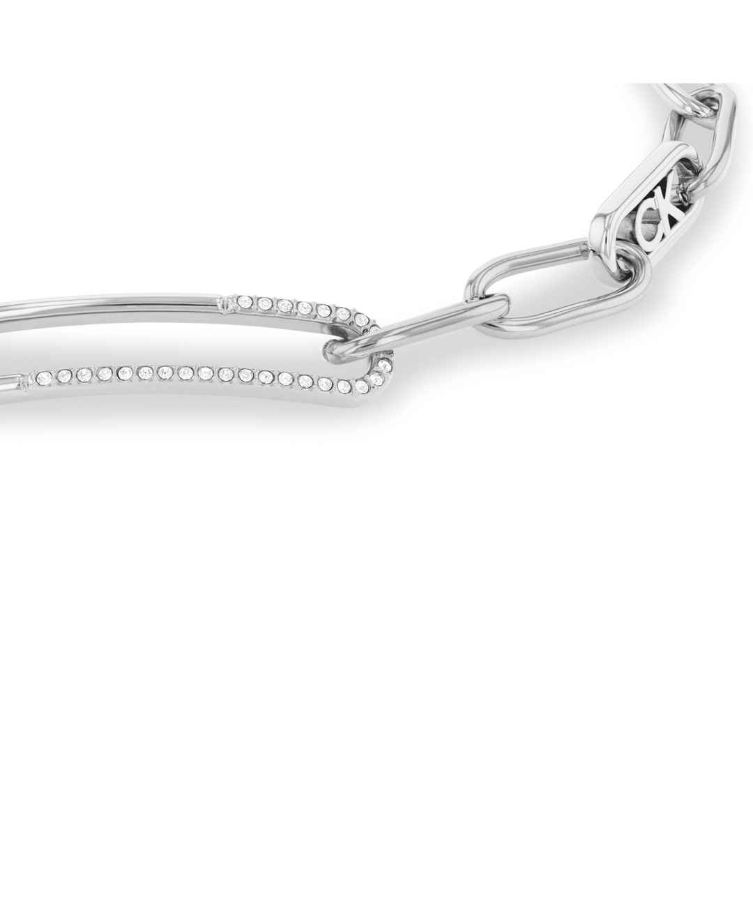An elegant addition to any look - Calvin Klein's oval link bracelet with an exaggerated pave-adorned oval at its center.
