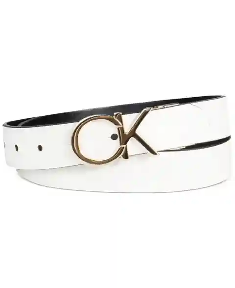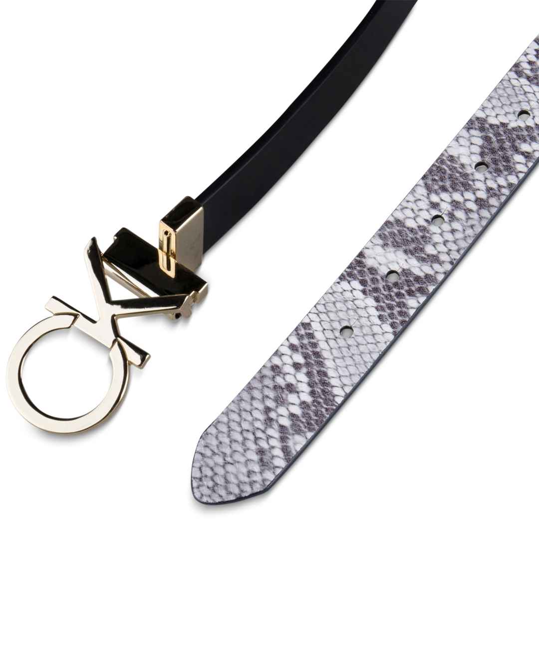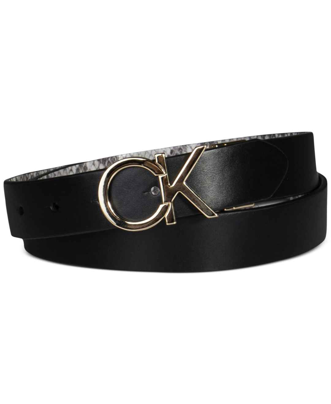 This Calvin Klein women's belt is sure to be a staple in your closet. The statement Ck monogram buckle will bring attention to your waist, while the reversible style gives you double-sided versatility.