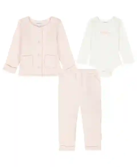 Calvin Klein Baby Girls 3-Piece Long-Sleeve Bodysuit, Jacket and Pants Set - Light Pink/White