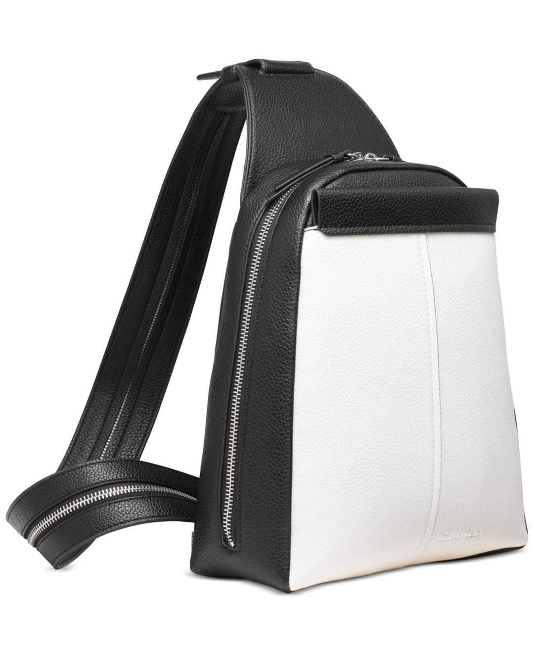 Calvin Klein Millie Colorblock Convertible Sling Backpack - Wht Black