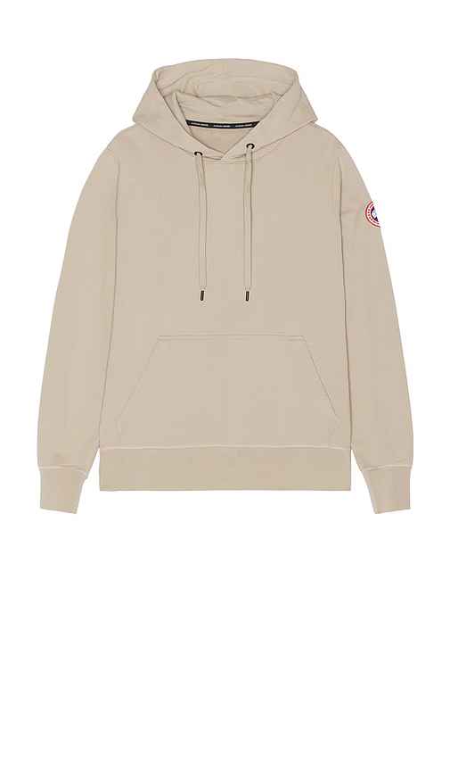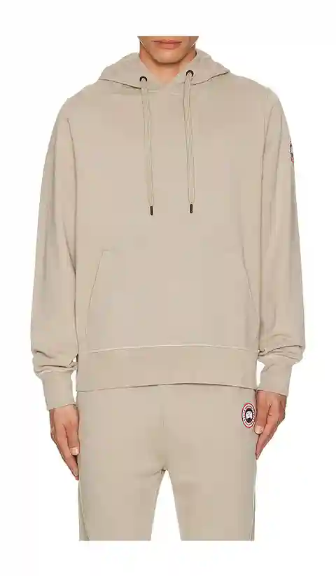 Canada Goose Huron Hoody in Grey. - size M (also in XL/1X) Canada Goose Huron Hoody in Grey. - size M (also in XL/1X) 100% cotton. Made in Portugal. Machine wash. Kangaroo pocket and drawstring hoodie. Logo patch at sleeve. Terrycloth lining. CGOO-MK7. 7403M.