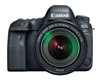For superb performance on the go, the Canon EOS 6D Mark II camera puts full-frame performance into a compact, fully featured DSLR. Its 26.2 Megapixel CMOS sensor and DIGIC 7 Image Processor help deliver amazing results even at expanded ISO settings, making it great for challenging low-light situatio...more