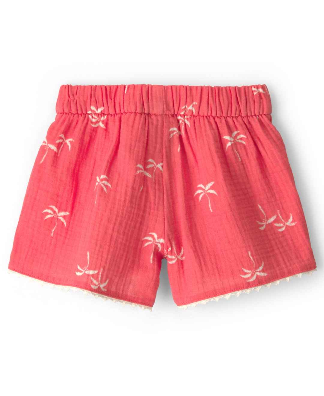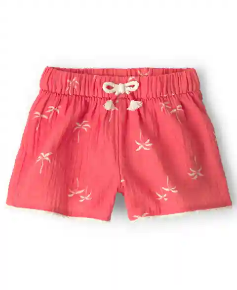 Get ready for sunny adventures with these tropical fashion shorts. Made from lightweight gauze, they offer breathability and comfort for all-day wear. The playful palm tree print adds a splash of fun, while the elastic waistband ensures easy dressing. Perfect for warm weather outings, these shorts k...more