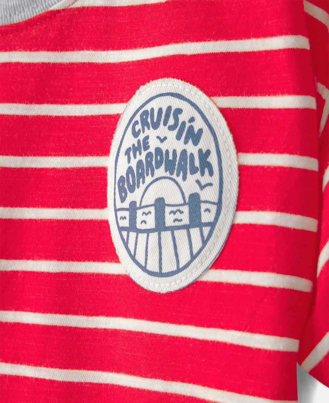 Striped for fun, this Carter's T-shirt features vibrant red and white stripes with a patch detail for added style. The relaxed fit makes it a versatile choice for playdates and outings.