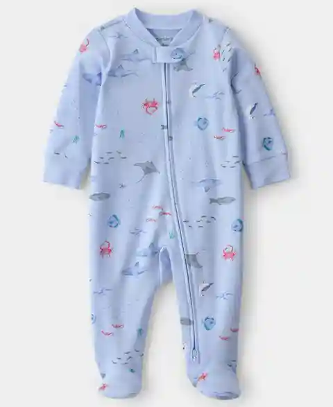 Dreaming of sea adventures, this Carter's pajama features a playful animal print and a convenient two-way zip. The design simplifies dressing and diaper changes for bedtime.