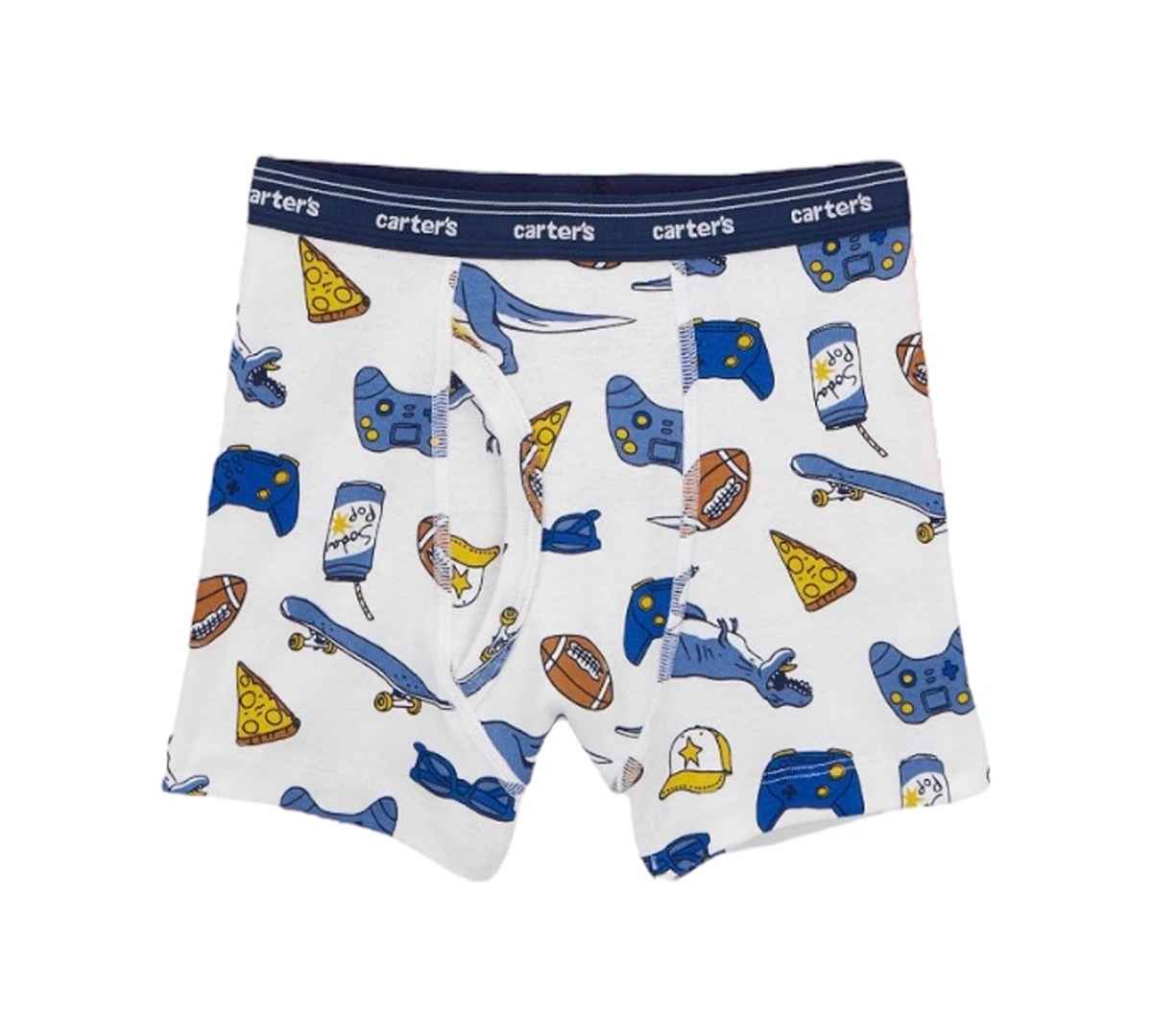 Featuring playful prints like pizza slices, game controllers, and sports gear, these Carter's boxer briefs are designed to make mornings simpler. With a tag-free design and a secure fit that stays put, they're made for everything from busy school days to laid-back weekends, all while scoring high on...more