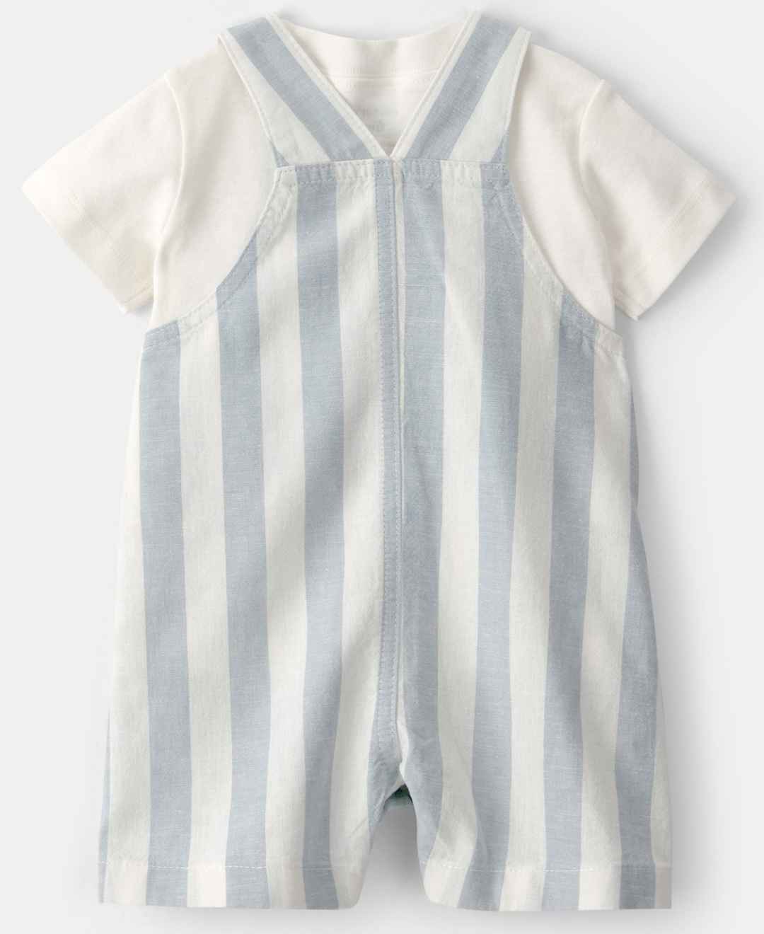 Carter's Baby Boys' Short-Sleeve T-Shirt and Stripe Romper, 2-Piece Set - Blue/Cream
