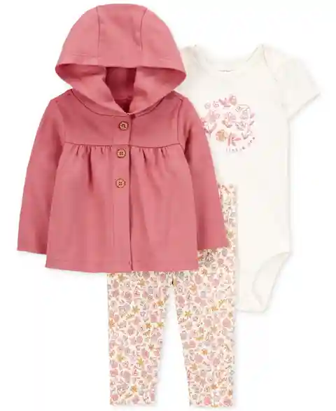 Carter's Baby Girls Cotton Little Cardigan, Bodysuit & Floral-Print Pants, 3 Piece Set - Pink