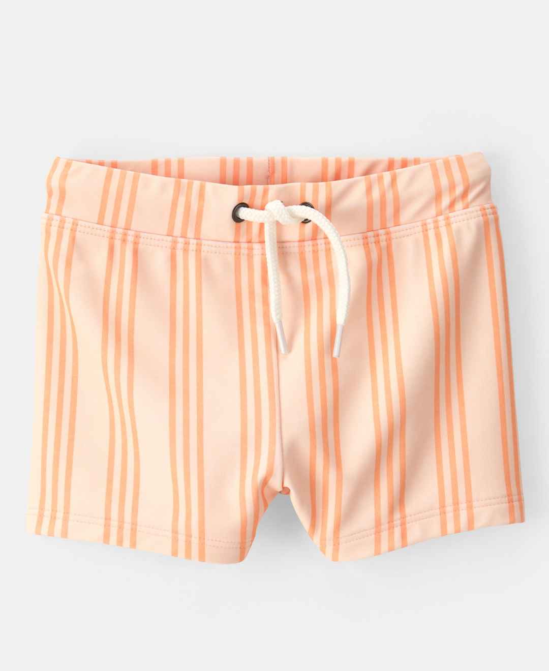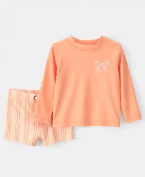 Adding a pop of color to leisure days, this Carter's swimsuit set includes a long-sleeve rashguard for sun protection. The playful striped shorts offer freedom for splashing and playing.