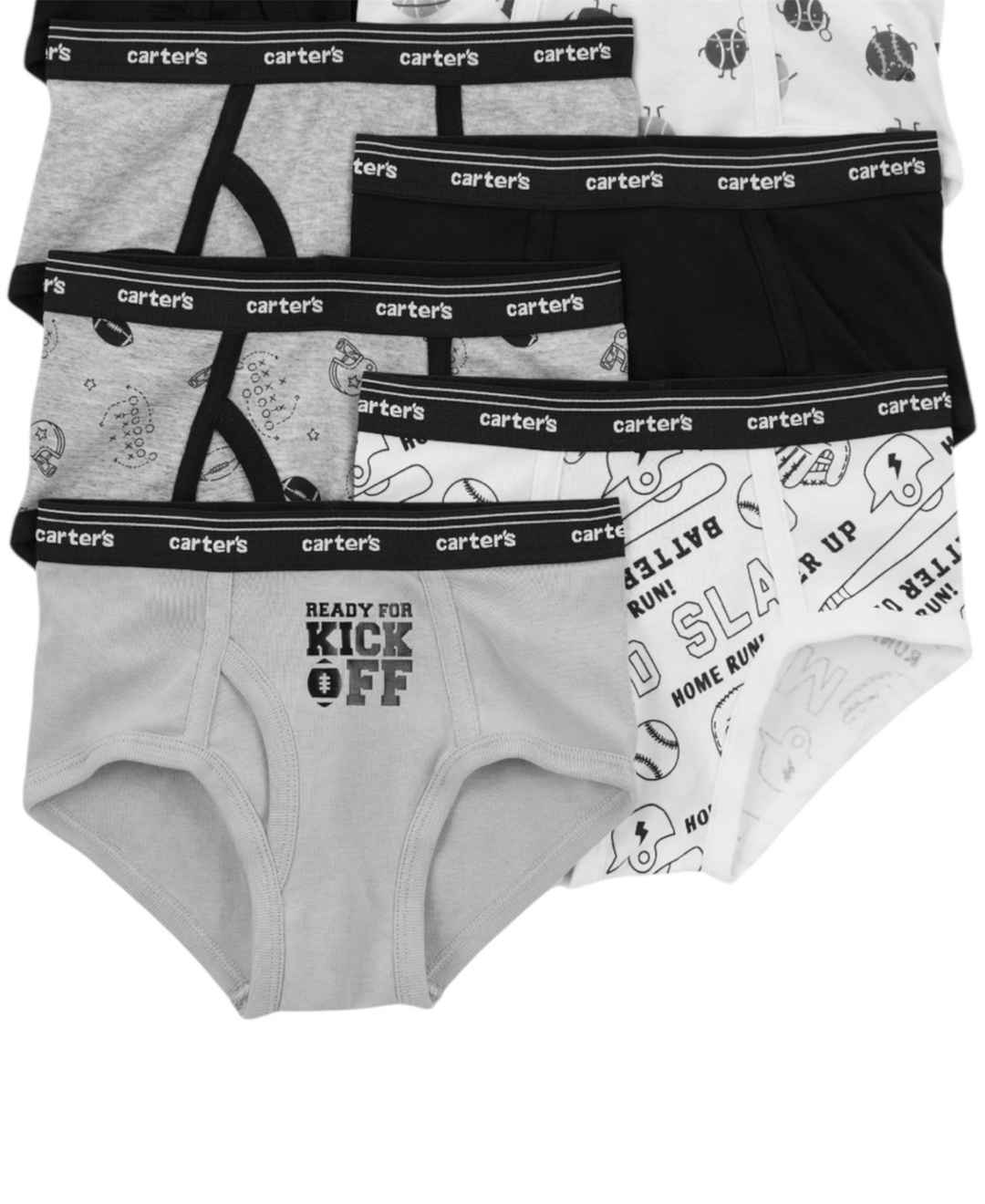 Carter's Little and Big Boys 7-Pack Sports Briefs - Black,gray,white