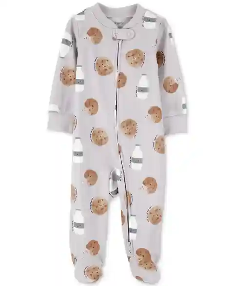 The sweetest footed pajamas from Carter's, this cotton pair features an adorable milk and cookies print.