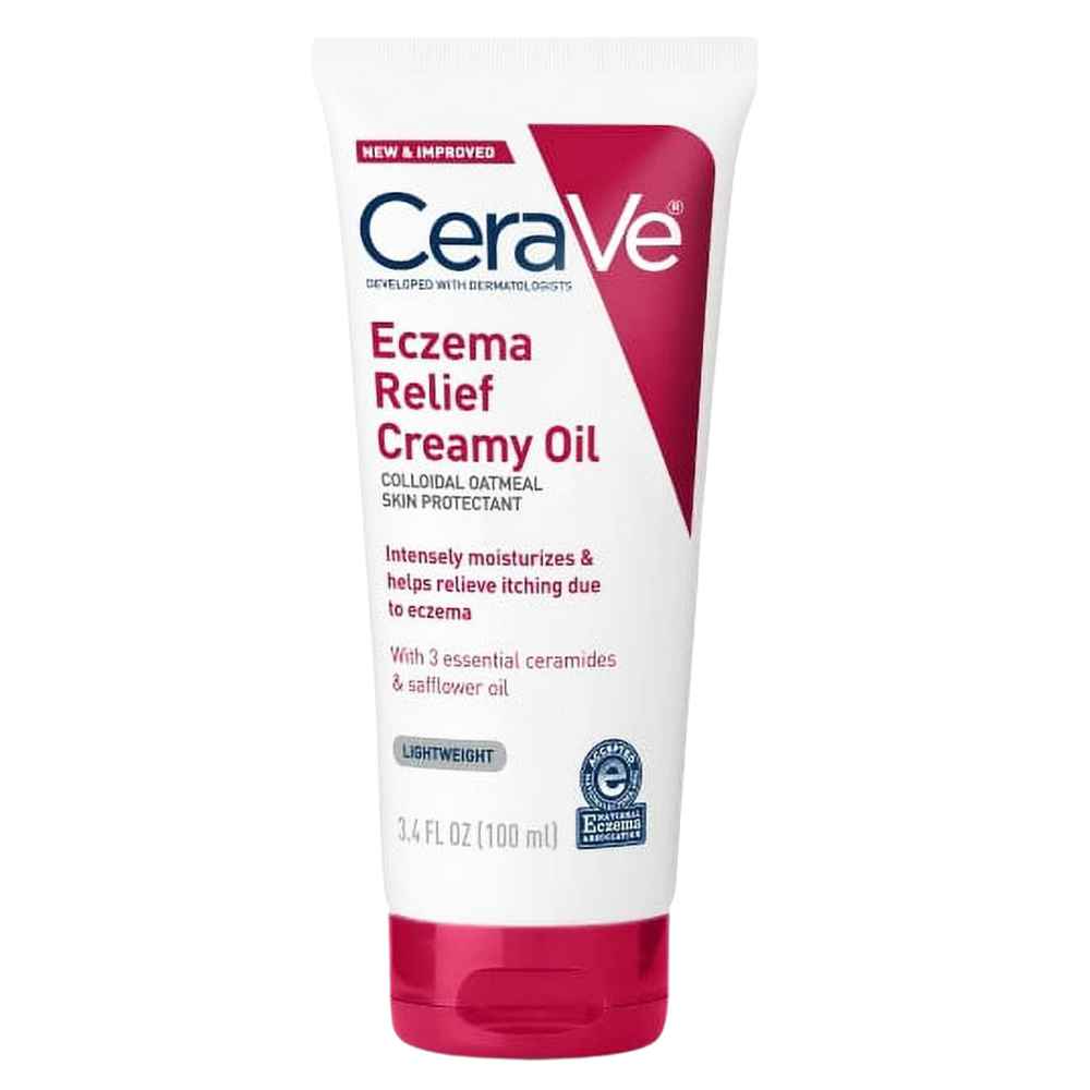 CeraVe's Eczema Relief Creamy Oil brings much-needed comfort and hydration to skin prone to eczema. Infused with essential ceramides and colloidal oatmeal, this body oil absorbs quickly, delivering non-greasy, soft, and smooth skin.The lightweight blend of sunflower seed oil, safflower oil, and cast...more