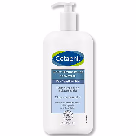 Cetaphil Moisturizing Relief Body Wash is designed to gently cleanse dry, sensitive skin, with a rich, creamy texture that instantly leaves skin feeling silky soft. Formulated with an Advanced Moisture Blend made up of glycerin, shea butter and soybean oil to provide 24 hour relief from dryness, hel...more