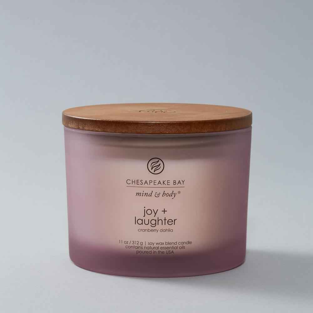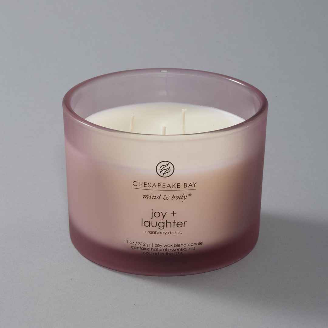 Joy + Laughter (cranberry dahlia) Chesapeake Bay Candle 3-Wick Coffee Table Jar, 11 oz
