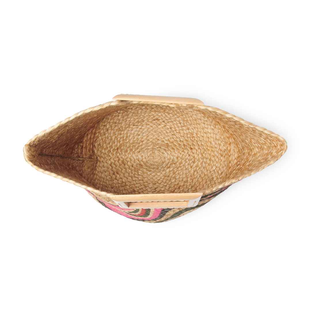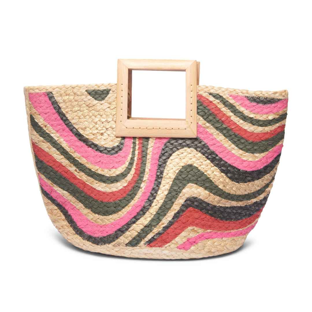 With an oversized square handle and a swirling finish, this raffia tote is a work of modern pop art. Pair the Edie Woven Basket Tote with your bathing suit and slides for a trip to the beach, a sundress and sandals for a picnic in the park, or with anything else for a dose of effortless style. By Ch...more