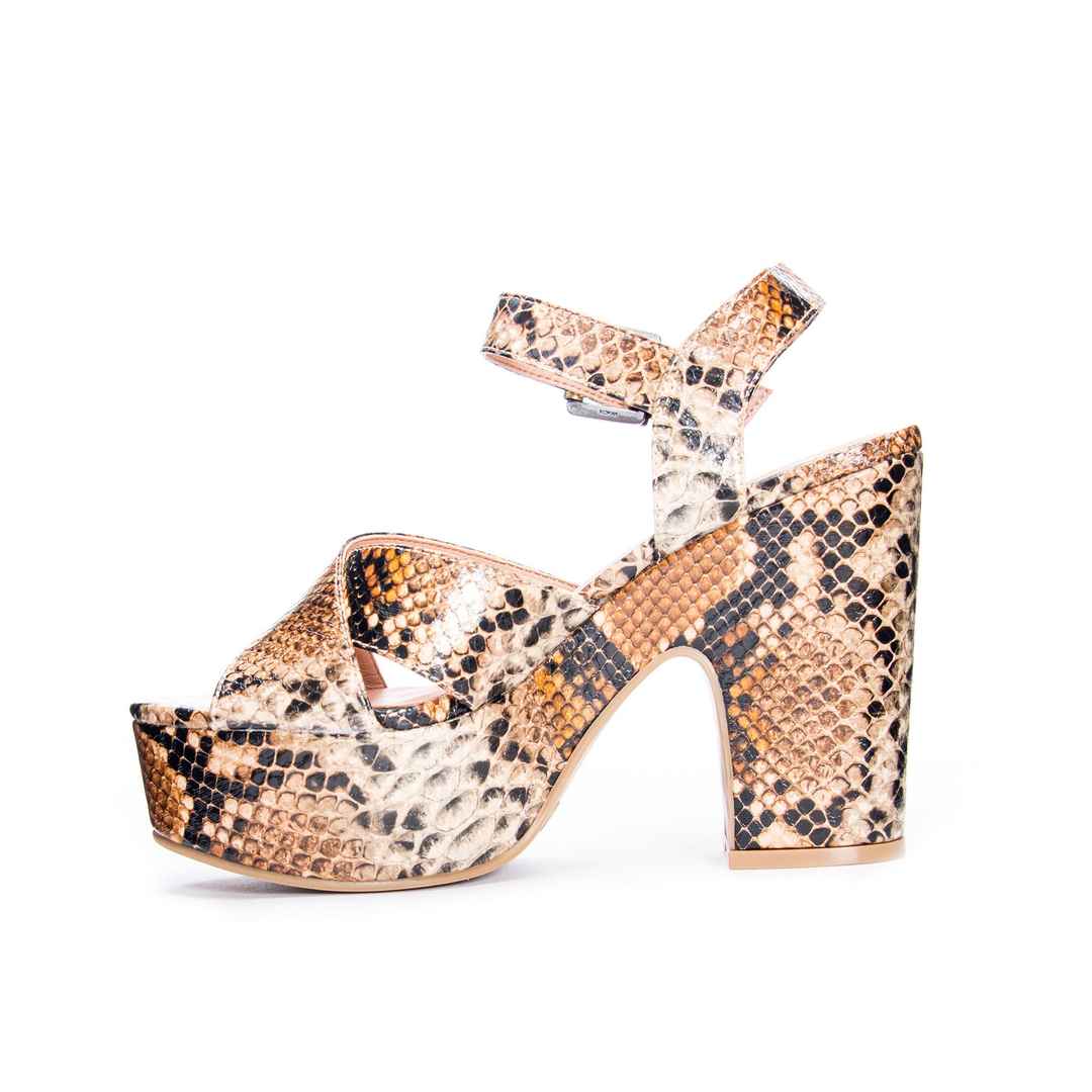 With a faux-snakeskin finish, crisscrossing vamp strap, sturdy ankle strap, block heel, and stacked sole, the Bali Platform Sandal is the perfect open-toed heel to take to Bali, or anywhere else for that matter. By Chinese Laundry Faux-snakeskin finish Manmade materials 4.5" heel, 1.5" platform | Ba...more