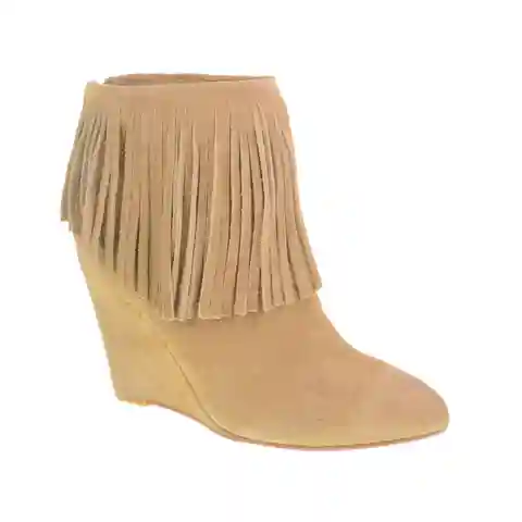 Put a little swing in your step with these fringed booties that can go from boho-chic to mod cool in an instant. A pointy toe and wedge heel keep them contemporary, while supple suede adds a touch of luxe. Back zipper for easy on and off. By Chinese Laundry Suede 3" heel, 6" shaft height, 10" shaft ...more